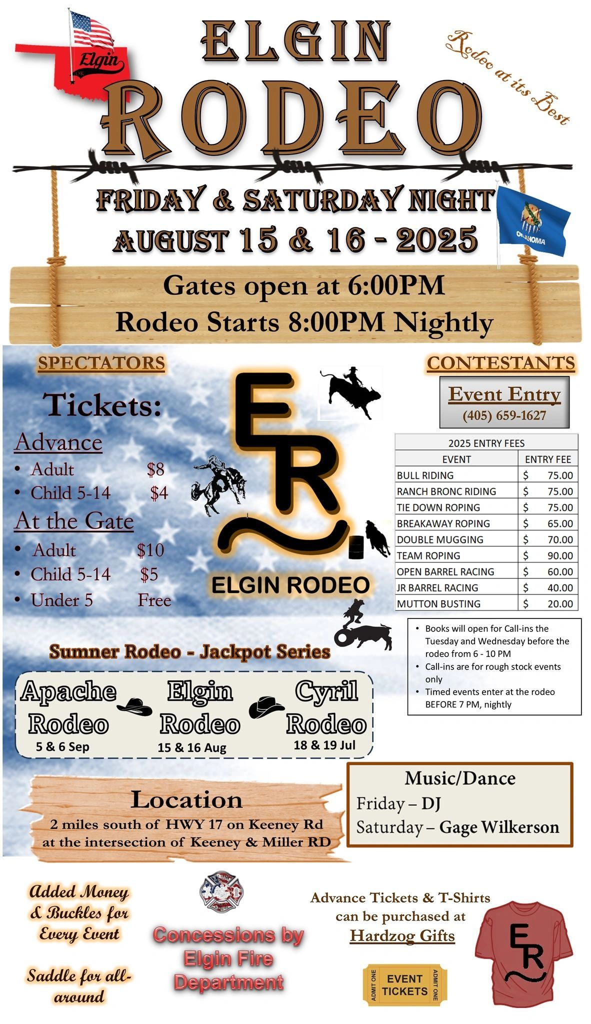 Rough stock must pre-enter online or call in Aug. 12 & 13 from 6 p.m. - 10 p.m. (405) 659-1627